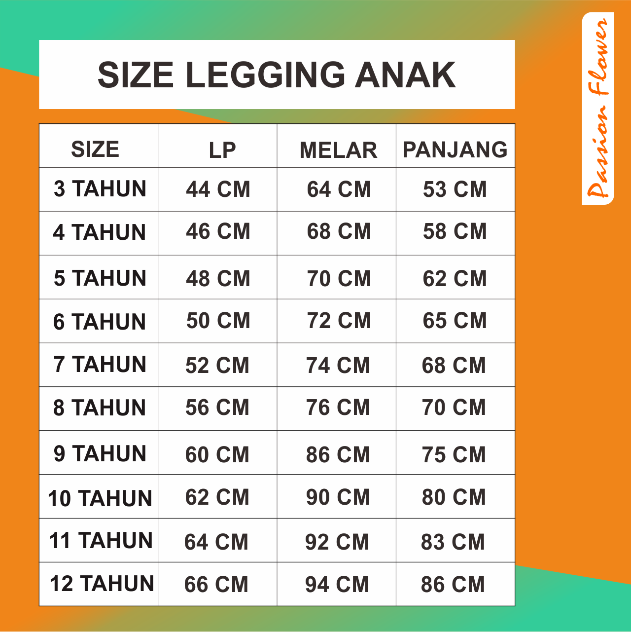# Ukuran: Anak Usia 3 – 8 & 9 – 14 Tahun